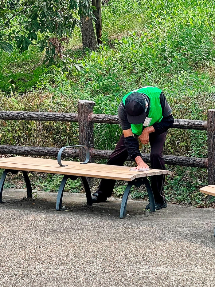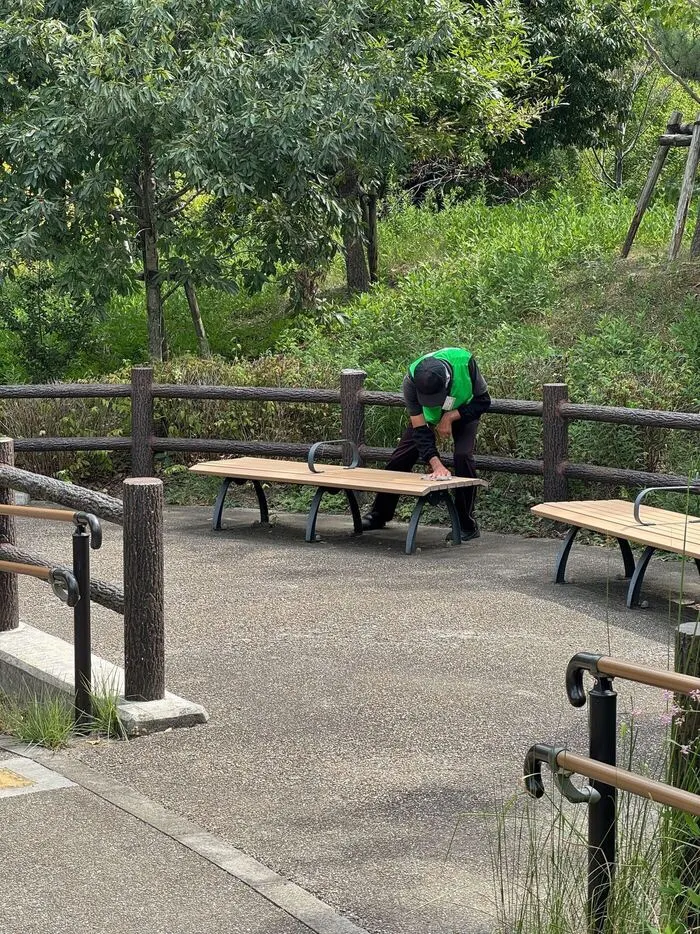下の写真は「弊社で行っている施設外就労・公園清掃の作業風景」です。